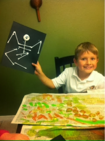 A couple of weeks ago, we decided to have a craft night at our house, and a few of our neighborhood friends came over to join. We made pumpkins out of plates, skeletons out of q-tips, and a candy corn tree. As you can see, lots of fun was had by all!